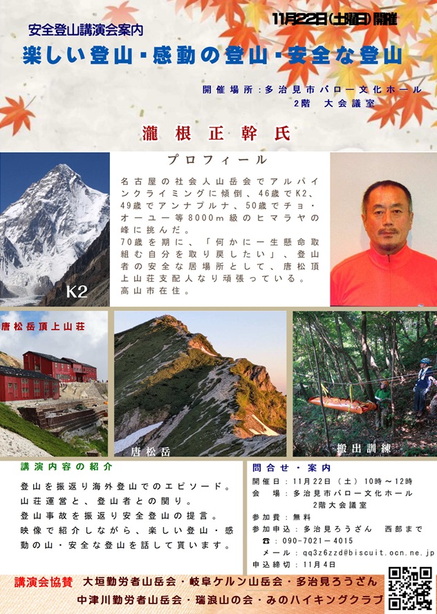 講演者: 瀧根正幹氏 唐松岳頂上山荘 支配人